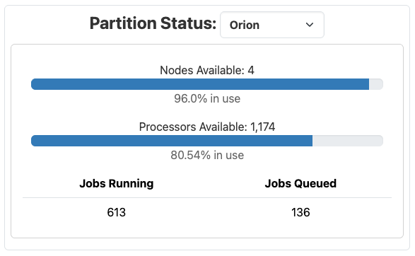 If you are only interested in seeing the status of a specific partition, choose this option. You will only be presented with a drop-down list of partitions that you have permissions to submit to; choose one that you are interested in. If you choose a GPU partition, it will also give you GPUs available.